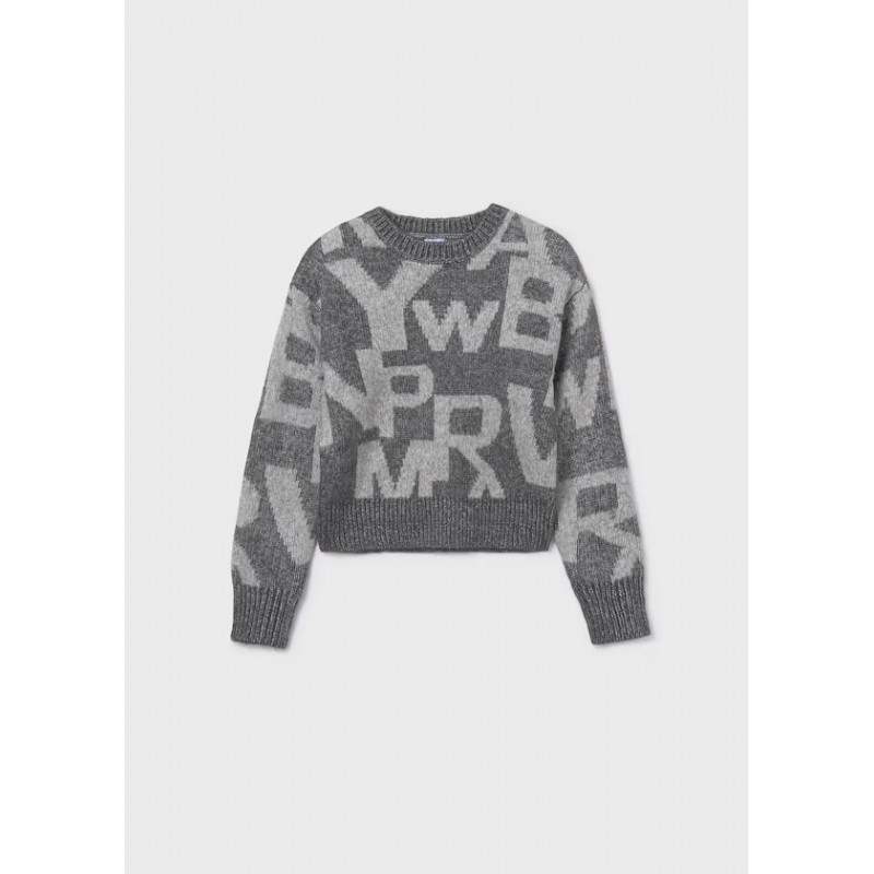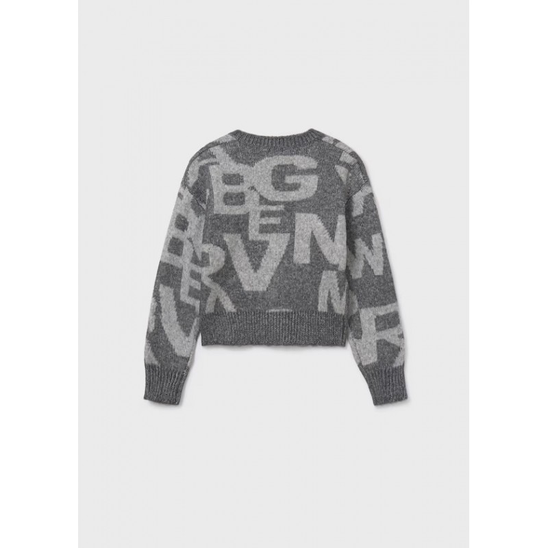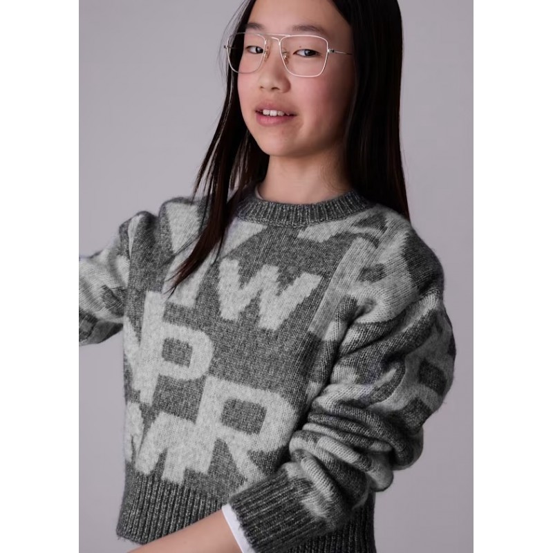Містить перероблений поліестер. Жакардовий светр з довгими рукавами для дівчаток. Круглий комір.
