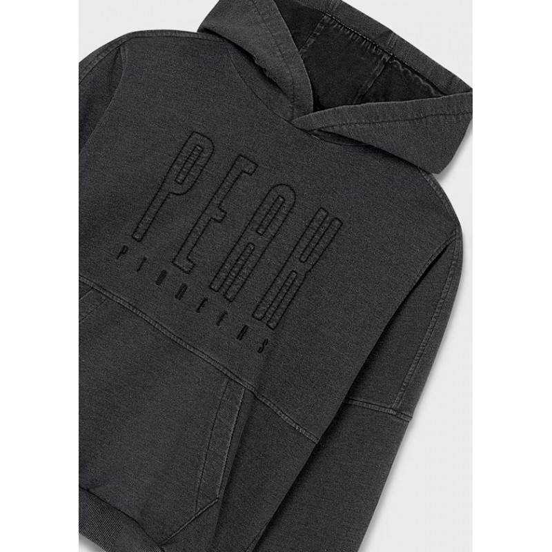 Ребристий в'язаний поділ і манжети для щільного прилягання. Функціональна передня кишеня. Вишита обробка.