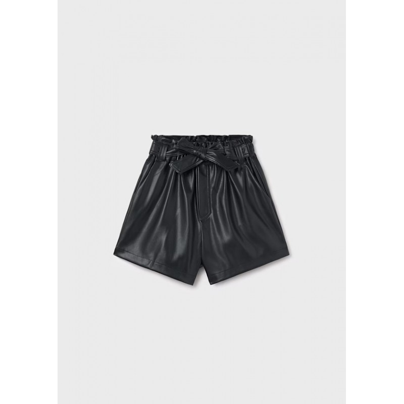 Шорти з високою талією. Еластичний пояс. Сучасна зовнішня частина зі штучної шкіри. Функціональні передні кишені.