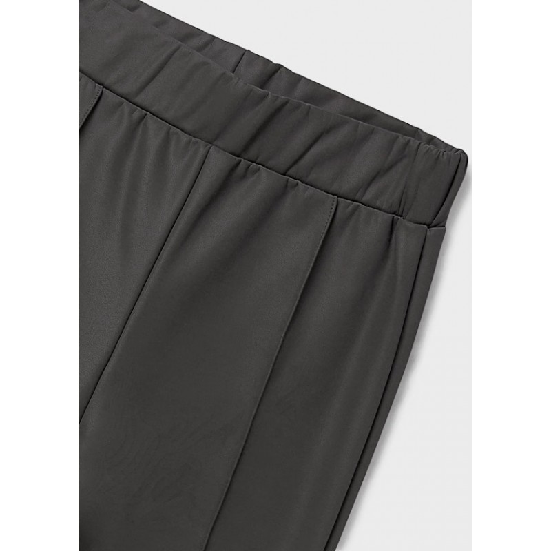 Дівчачі штани-кльош з широким подолом. Еластичний пояс. Сучасна зовнішня частина зі штучної шкіри. Плісований дизайн.