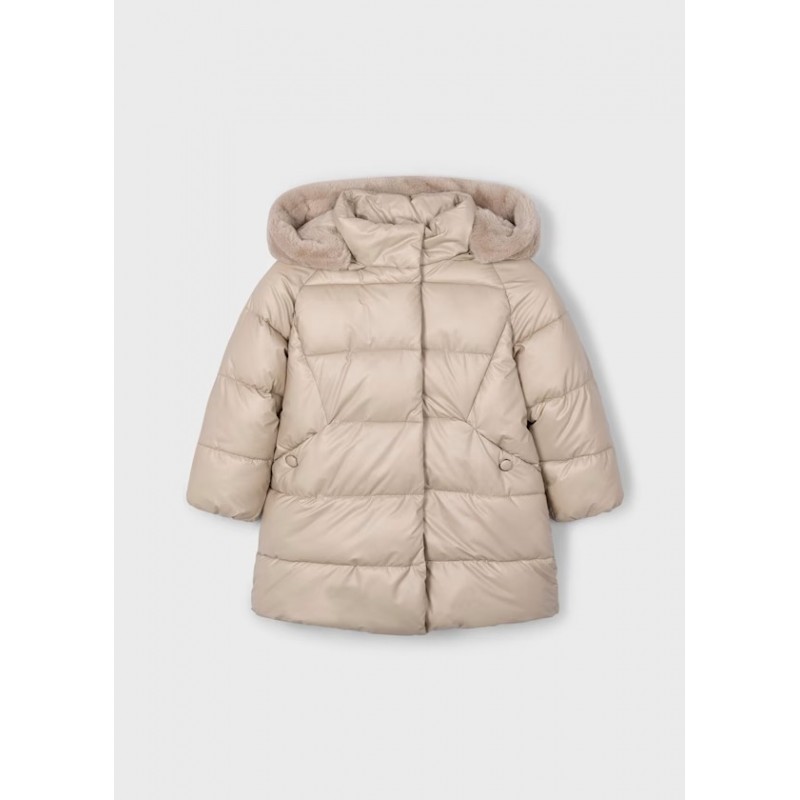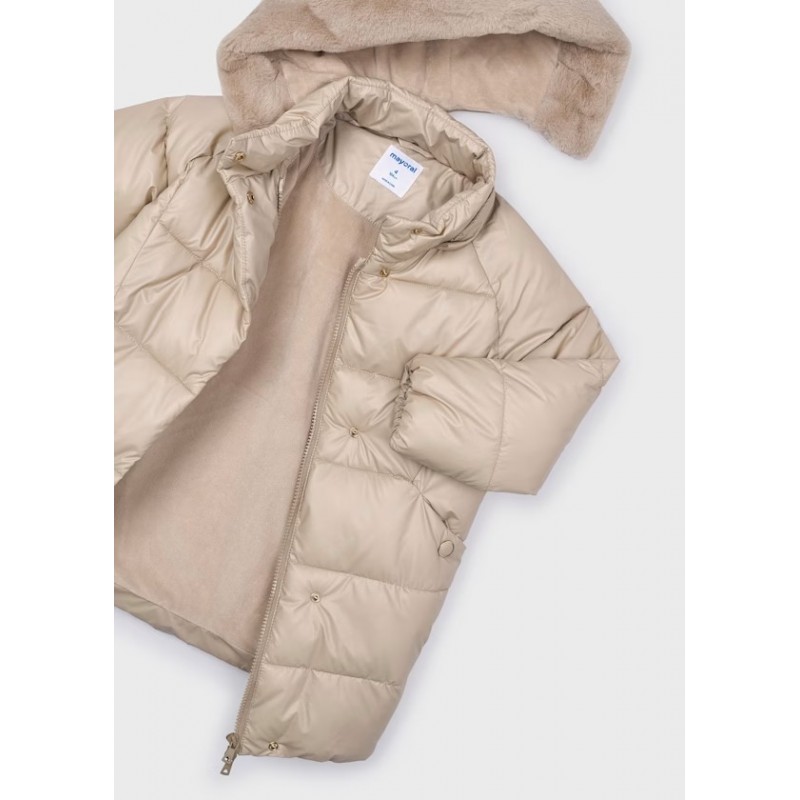 Знімний капюшон з хутряною обробкою. Модель з довгими рукавами. Застібка на ґудзики спереду. Застібка на блискавку по центру спереду. Зовнішня частина зі стьобаного текстилю. Підкладка з м'якого поліестеру.