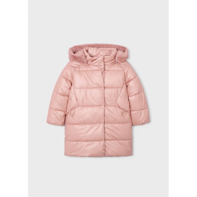 Знімний капюшон з хутряною обробкою. Модель з довгими рукавами. Застібка на ґудзики спереду. Застібка на блискавку по центру спереду. Зовнішня частина зі стьобаного текстилю. Підкладка з м'якого поліестеру.