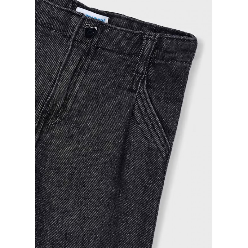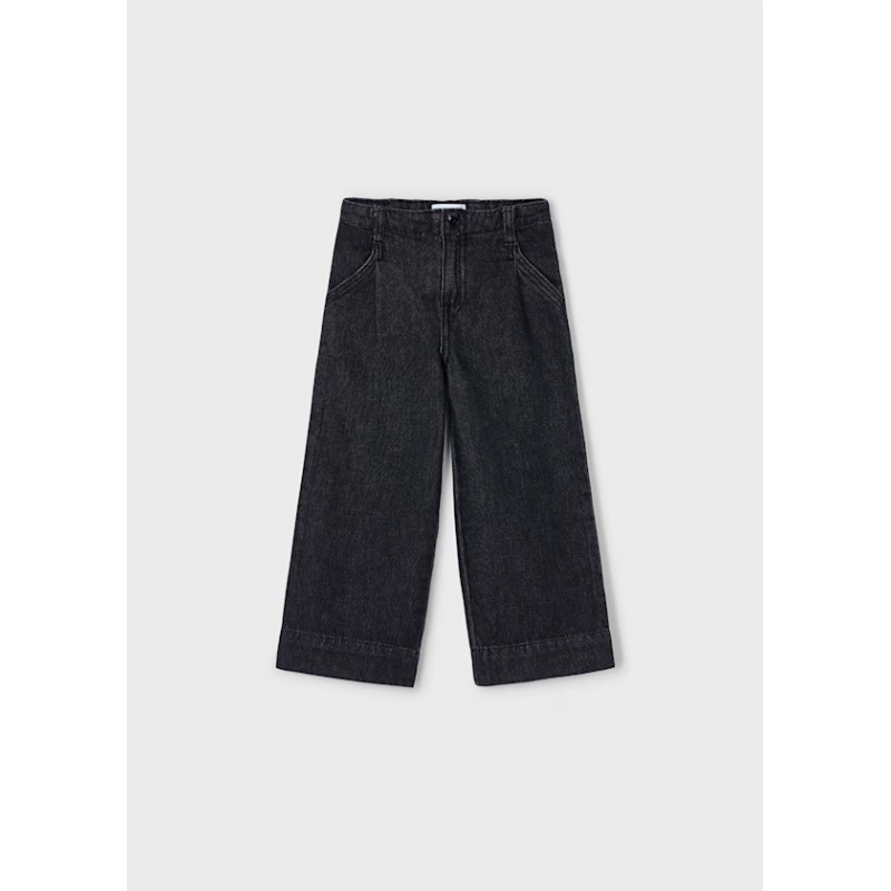 Штани-кльош для дівчаток з широким подолом. Регульований еластичний пояс на ґудзиках для кращої посадки. Зручний, універсальний денім для повсякденного образу. Плісований дизайн. Функціональні передні кишені.