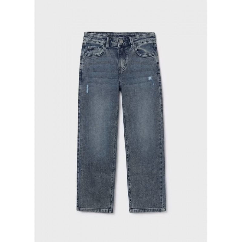 Штани унісекс. Застібка на блискавку та ґудзики. Регульований еластичний пояс з ґудзиками всередині для кращої посадки. Зручна та універсальна джинсова тканина для повсякденного образу. Функціональні передні кишені. Функціональні задні кишені. Деталі з ефектом потертості. Цей унісекс-дизайн пропонує велику універсальність завдяки нейтральним тонам та стилю.