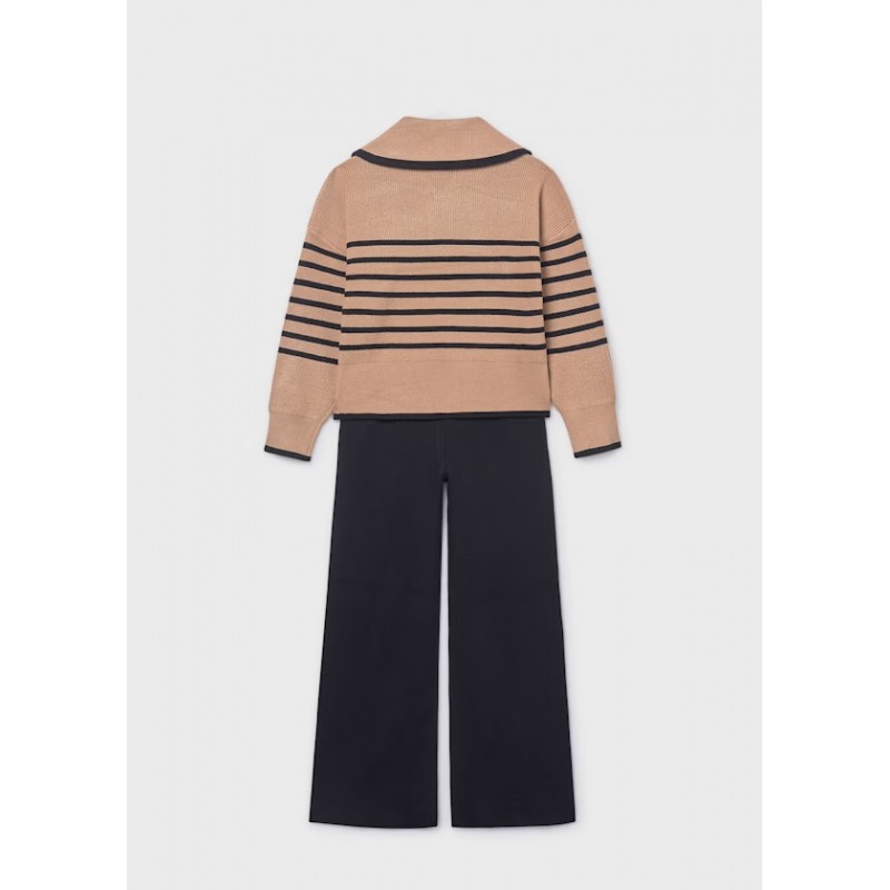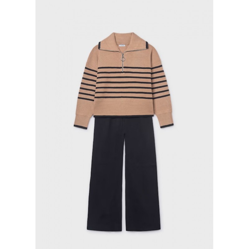 Комплект светра та штанів для дівчинки. Светр вільного крою для дівчинки. Застібка на блискавку. Смугастий візерунок. Штани для дівчинки. Еластичний пояс.