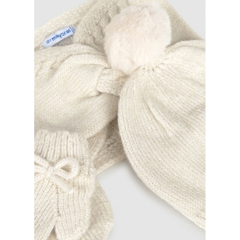 Оригінальний дитячий комплект із трьох предметів. Закритий шарф для малюка – модне та незамінне доповнення до зимового гардеробу. Шапочка для малюка виготовлена з теплих, гнучких матеріалів, що гарантують ідеальну посадку та максимальний комфорт для захисту від холоду. Пара дитячих рукавичок, ідеально підходить для холодних днів.