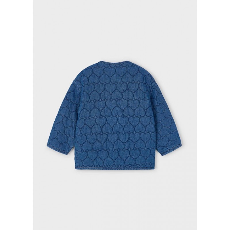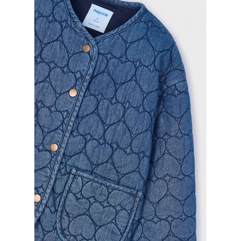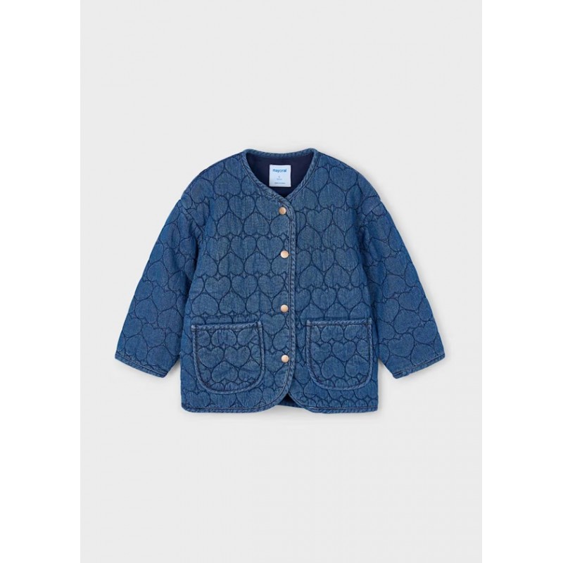 Дівчача куртка з довгими рукавами. Застібається на ґудзики спереду. Зручна, універсальна джинсова тканина для повсякденного образу. М'яка поліестерова підкладка. Передні кишені.