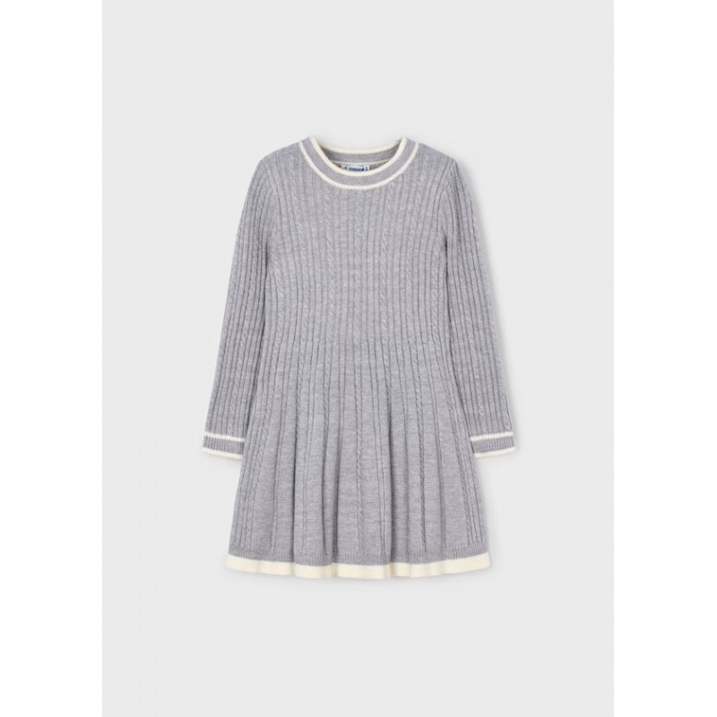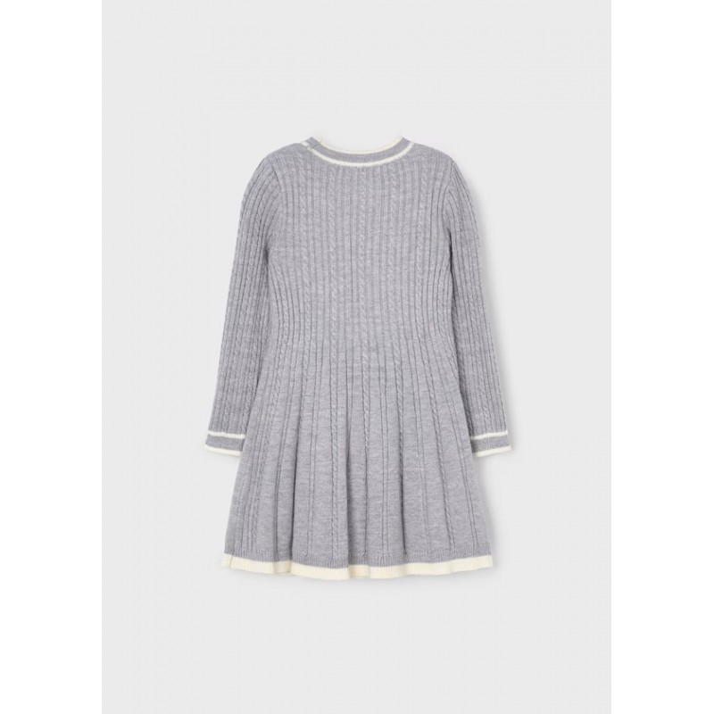 Дівчача сукня з довгими рукавами та контрастними деталями. Круглий виріз горловини з контрастними деталями. М'яка трикотажна тканина.