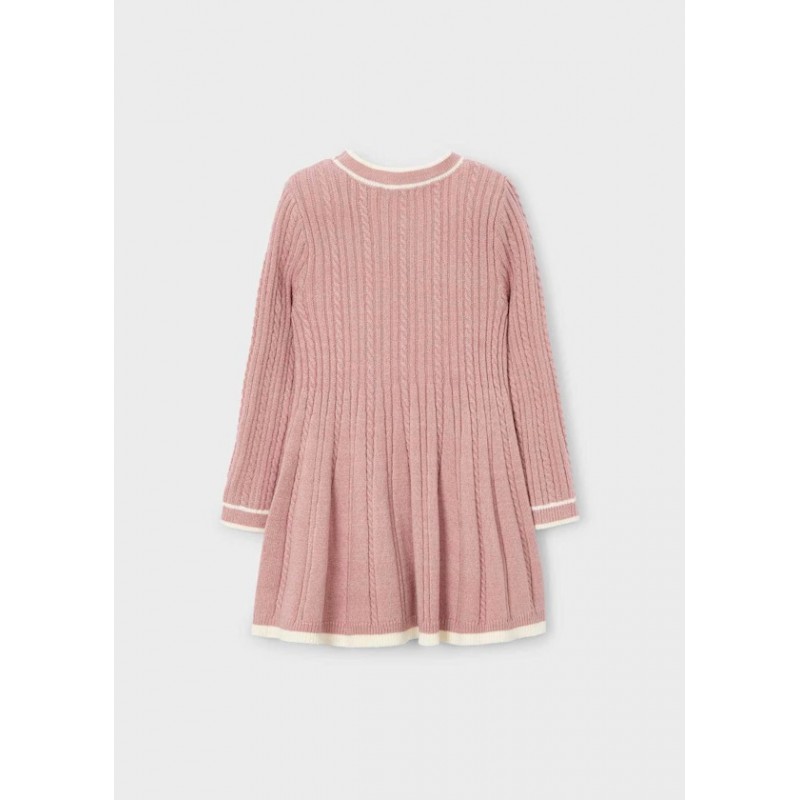 Дівчача сукня з довгими рукавами та контрастними деталями. Круглий виріз горловини з контрастними деталями. М'яка трикотажна тканина.