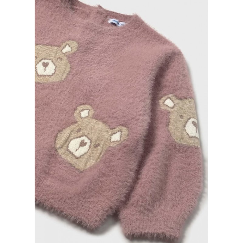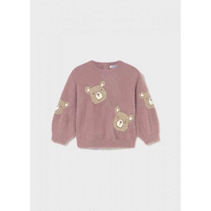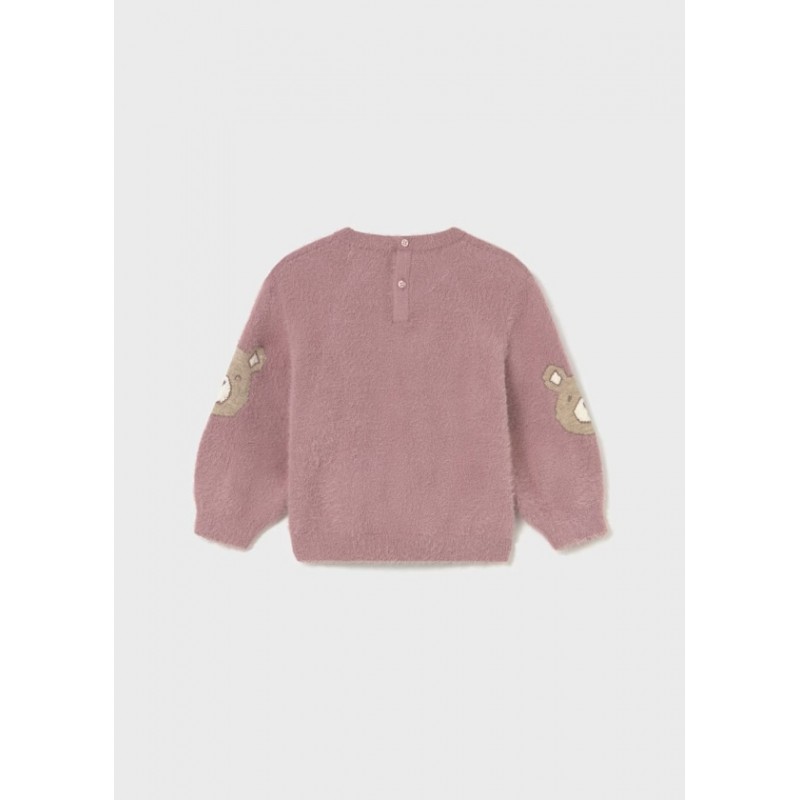 Дитячий хутряний светр з довгими рукавами. Круглий комір. Застібка на ґудзики ззаду для легкого одягання. В'язаний малюнок інтарсія.