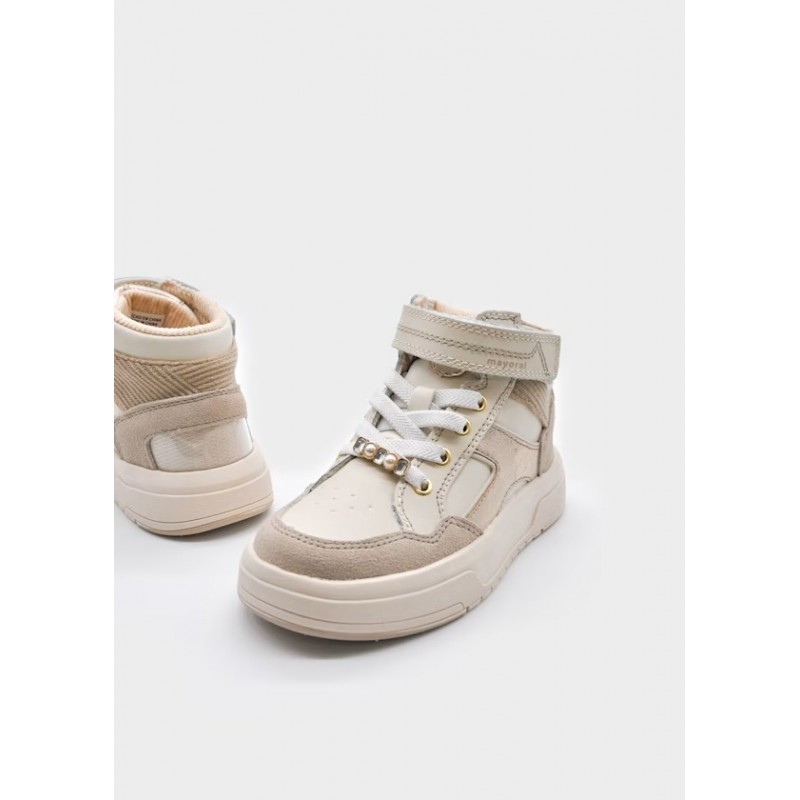 Сучасні спортивні ботильйони для дівчаток, ідеально підходять для додавання повсякденного стилю. Верх поєднаний зі шкіри та інших матеріалів. Усе наше взуття виготовлене зі шкіри без хрому. Внутрішня підкладка - це комбінація текстилю та шкіри. Зручна, нековзка гумова підошва на платформі для додаткової амортизації. Регульована застібка на липучці забезпечує ідеальну підтримку стопи.