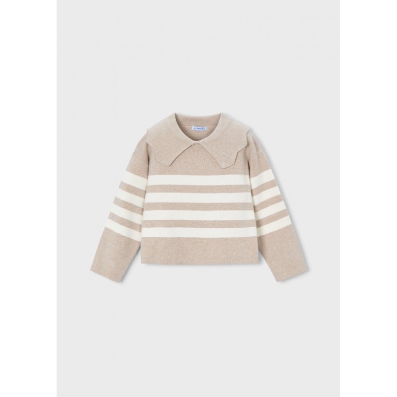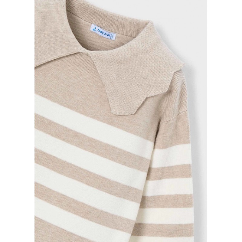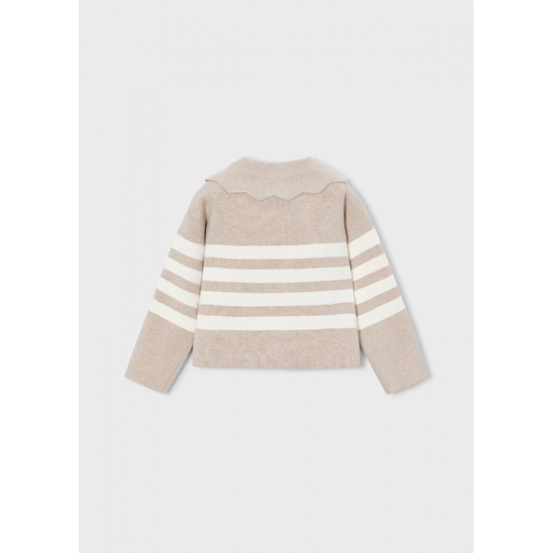 Светр з довгими рукавами для дівчинки. Комір з лацканами та хвилястим малюнком. Зручна в'язана тканина. Смугастий візерунок.