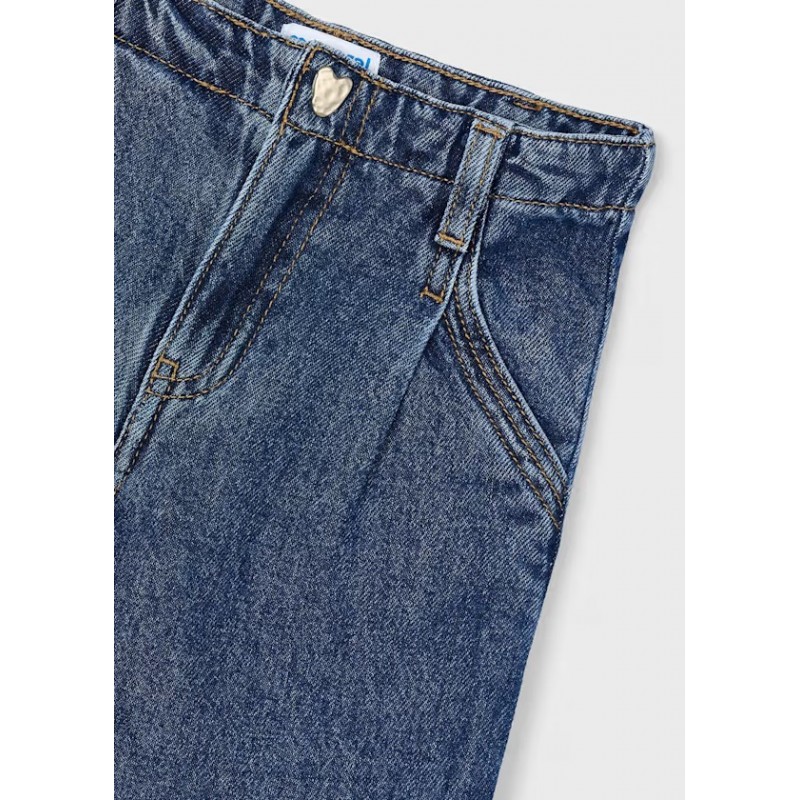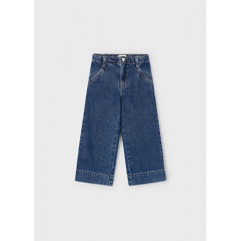 Штани-кльош для дівчаток з широким подолом. Регульований еластичний пояс на ґудзиках для кращої посадки. Зручний, універсальний денім для повсякденного образу. Плісований дизайн. Функціональні передні кишені.