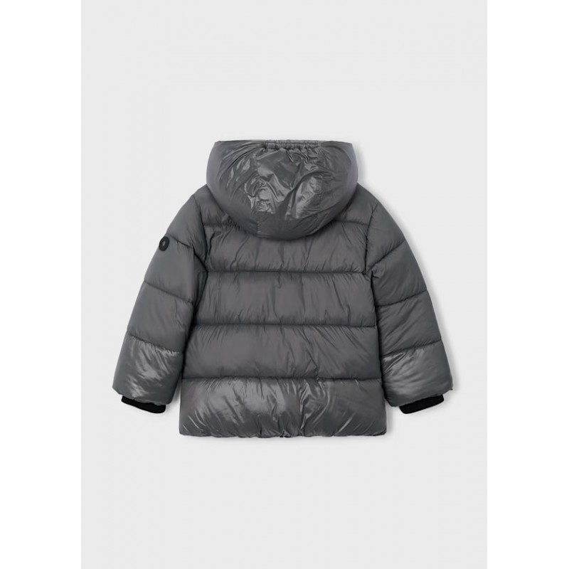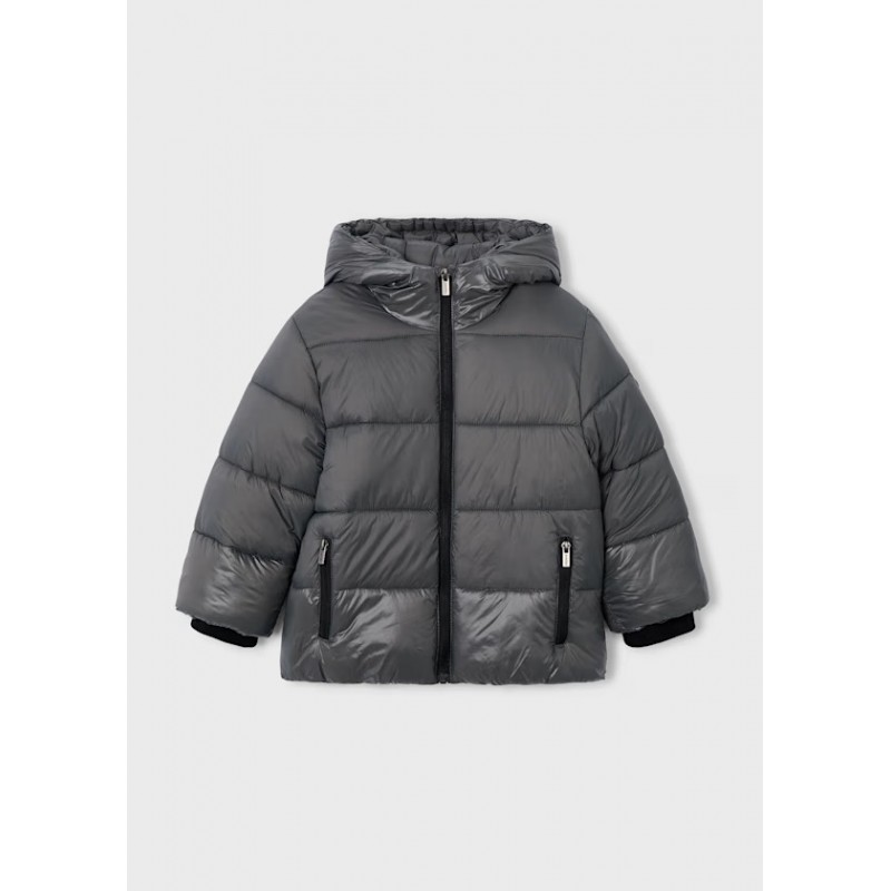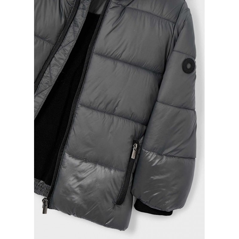 Комір з капюшоном. Застібка-блискавка спереду по центру. Зовнішня частина з стьобаного текстилю. Еластичний поділ по краю для щільного прилягання. Функціональні передні кишені.
