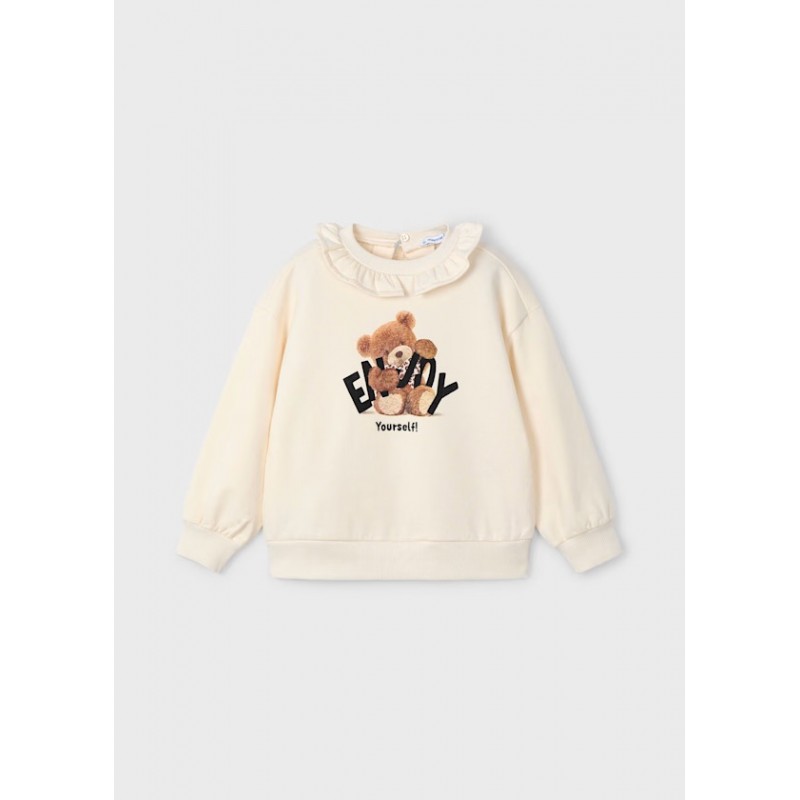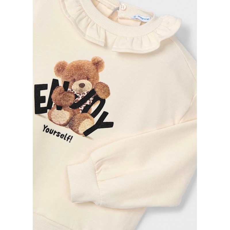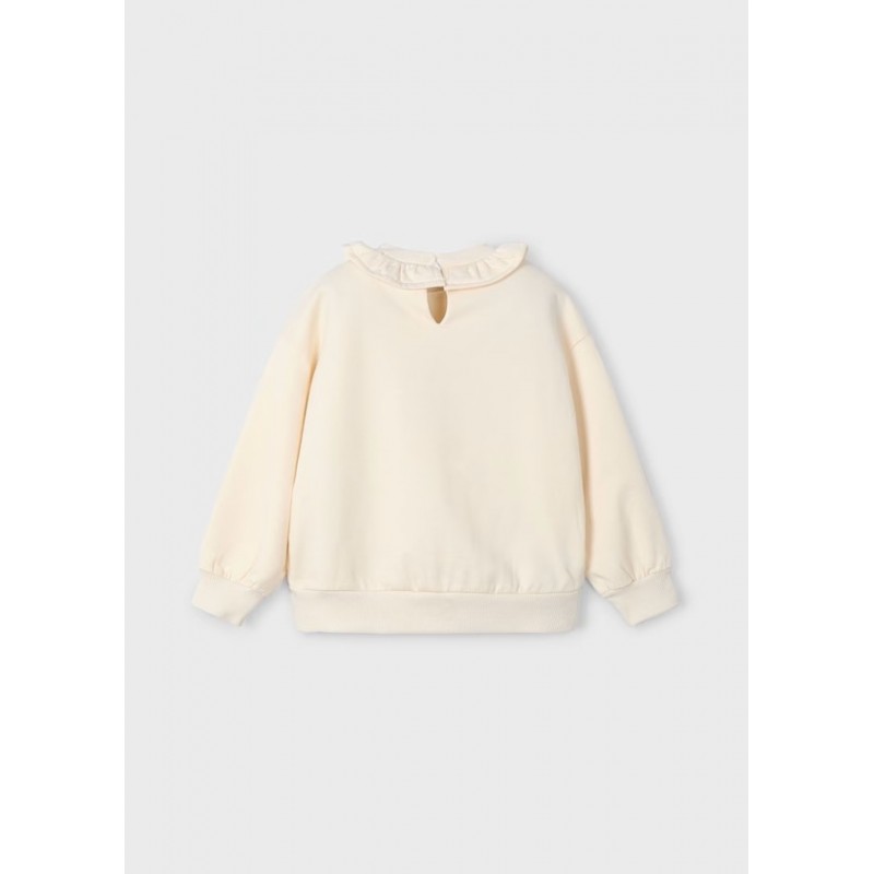 Круглий комір з рюшами. Ребристий в'язаний поділ та манжети для щільного прилягання. Вишита обробка.