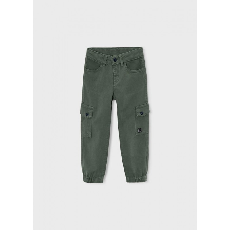 Довгі штани карго для хлопчиків, вільні зверху, занижена промежина, звичайний крій. Застібка на один ґудзик. Регульований еластичний пояс з ґудзиками з внутрішньої сторони пояса для кращої посадки. Еластичний поділ для кращої посадки. Дизайн з кількома кишенями.