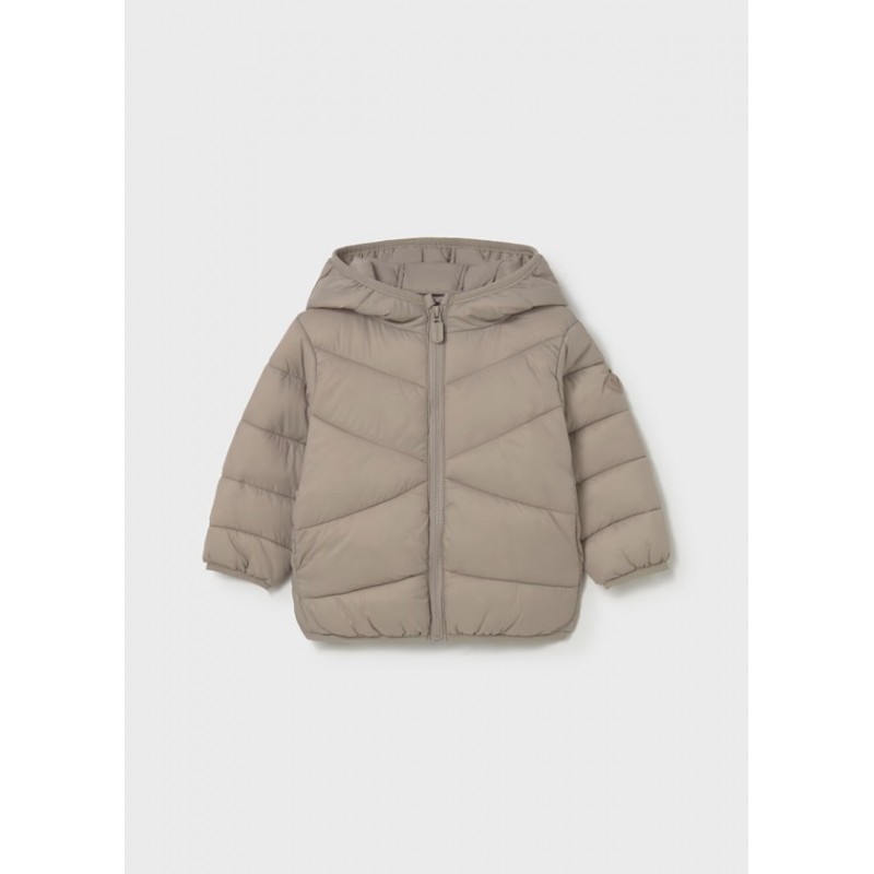 Комір з капюшоном. Застібка-блискавка спереду по центру. Зовнішня частина з стьобаного текстилю. Функціональні передні кишені.