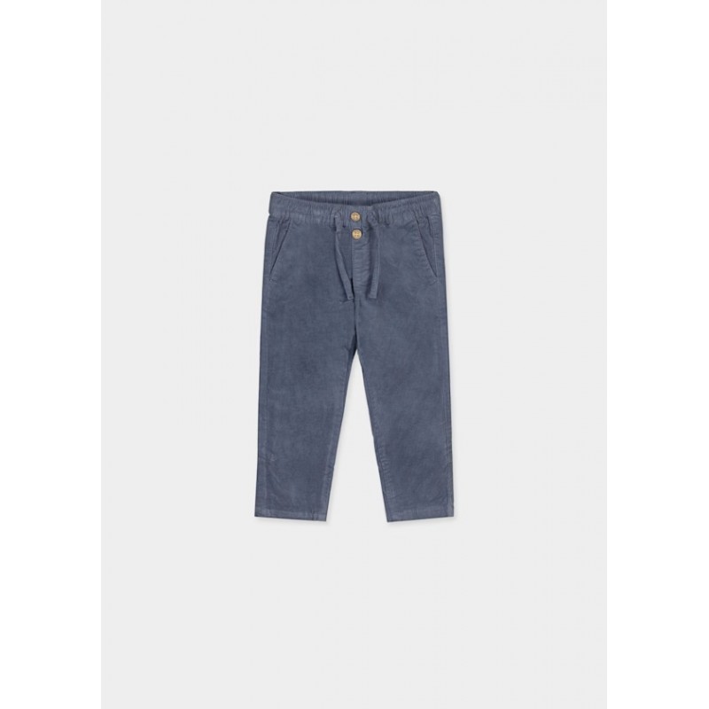 Довгі штани-джогери для немовлят, вільні зверху та звужені до щиколотки. Ідеально підходять для спортивного образу, відображаючи вплив спортивного одягу на вуличний одяг. Еластичний пояс зі шнурком. М'яка, тепла тканина з мікровелвету. Передні кишені.