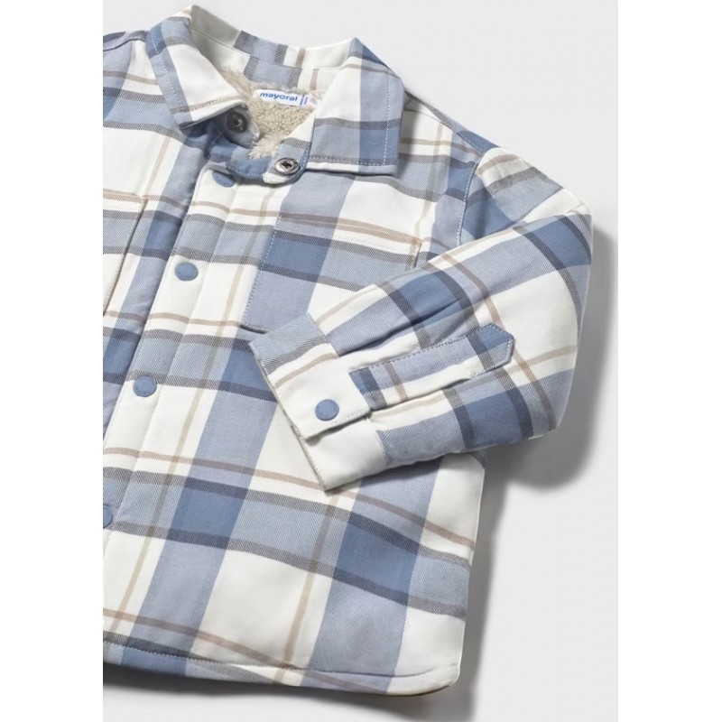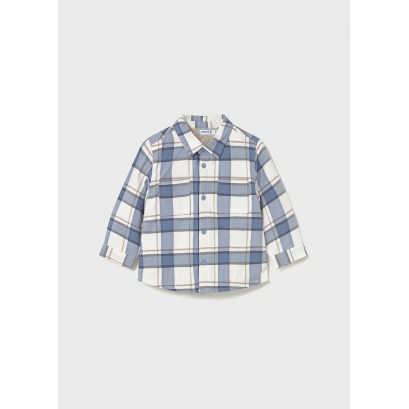 Дитяча верхня сорочка з довгими рукавами. Комір сорочки. Застібка на ґудзики спереду. 100% бавовняна тканина. М'яка поліестерова підкладка. Функціональні передні кишені.