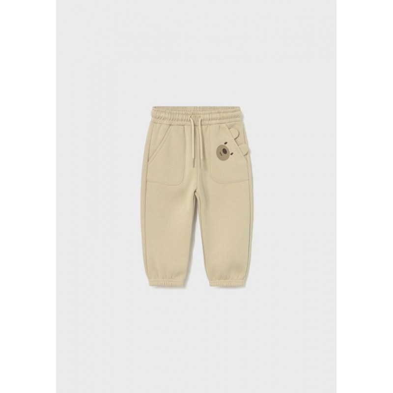 Зручні довгі спортивні штани для немовлят. Еластичний пояс зі шнурком. Посилені наколінники запобігають зносу та забезпечують більшу міцність і довговічність. Еластичний низ для кращої посадки. Функціональні передні кишені. Функціональна задня кишеня. Декоративні елементи: аплікація у вушках, вишивка, шовкотрафаретний друк.