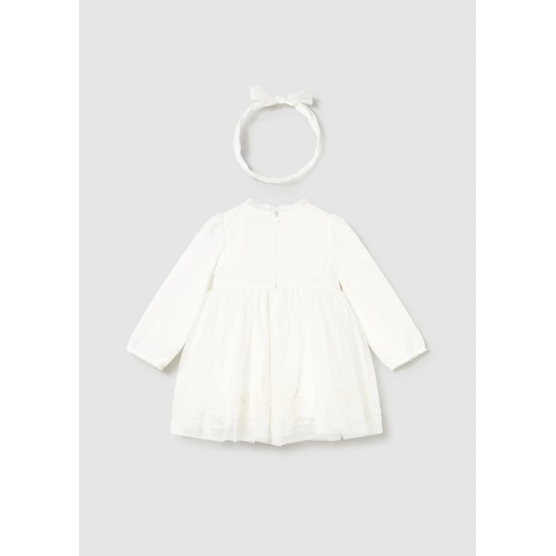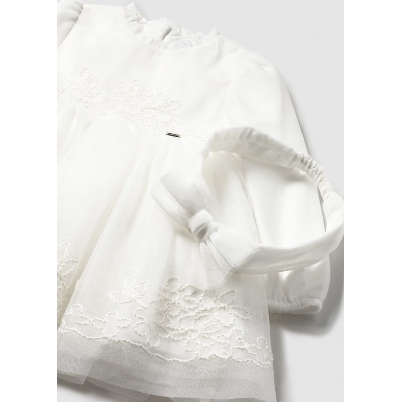 Дитяча сукня з пов'язкою на голову в тон. Дитяча сукня з довгими рукавами. Невидима застібка-блискавка ззаду. Виготовлена з легкого, струмливого фатину. На підкладці. Махровий фасон. Вишита обробка. Цей ексклюзивний виріб призначений для святкувань, подій та особливих випадків. Дитяча пов'язка на голову для церемонії, ідеальний аксесуар для найособливіших випадків.